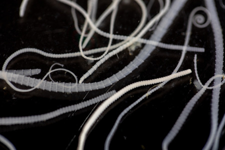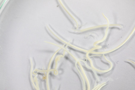 The study parasite or worms is a freshwater fish parasite in laboratory for education.