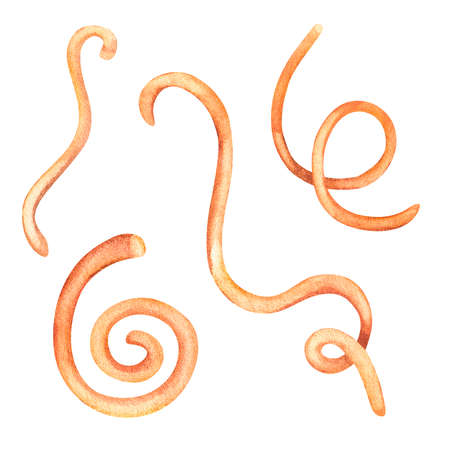Helminths Toxocara canis dog roundworm, the cause of toxocariasis in man, an infestation transmitted from material contaminated by eggs in dogs feces. 3D illustration of a first larval stage