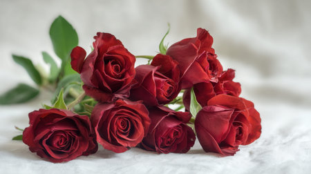 A stunning arrangement of fresh red roses against a soft gray background. Perfect for themes of love, romance, and elegance in any design.