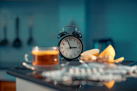 Alarm clock on the table. Concept of time management and deadline