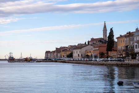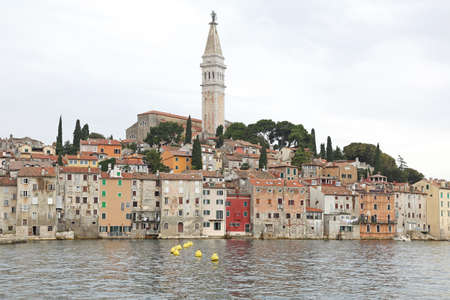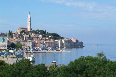 The city of Rovenj on the Istrian Peninsula in Croatia. The town is also know by its Italian name of Rovigno. Located on the western coast of the Istrian peninsula, it has become a popular tourist resort and fishing port.