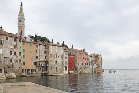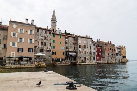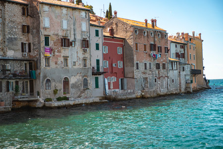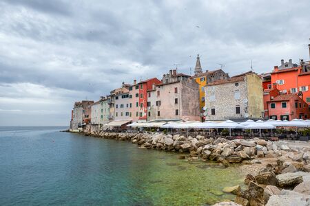 Rovinj, Croatia - May 22, 2018: Coastal town of Rovinj, Istria, Croatia. Colorful buildings and Adriatic sea.