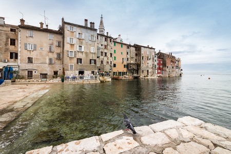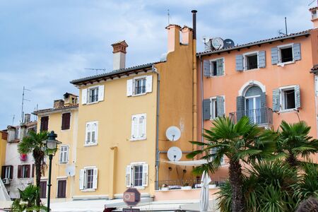 Houses facades at the waterfront in Rovinj town, Istrian Peninsula, Croatia