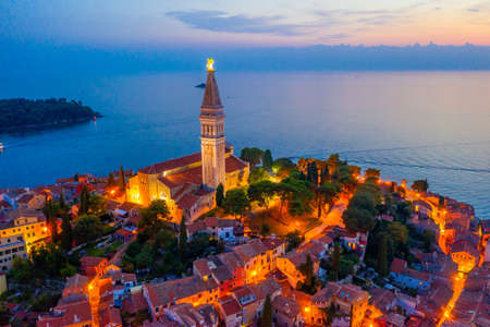 Sunset aerial view of Croatian town Rovinj