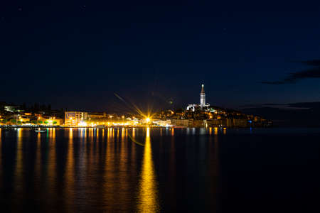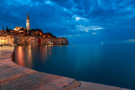 Rovinj old town at night in Adriatic sea coast of Croatia, Europe