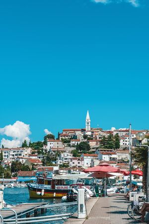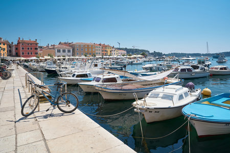 ROVINJ, CROATIA - June 8, 2019: view of city harbor with boats in summer time. travel concept