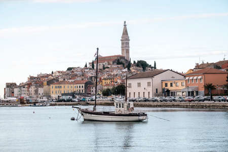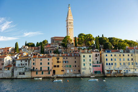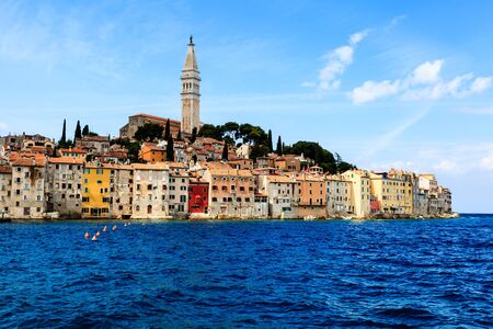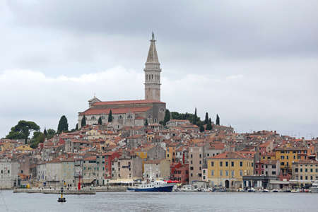 Rovinj.Croatia.City skyline with Saint Euphemia Cathedral on the Istria Peninsula in the Adriatic Sea in Croatia.