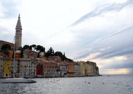 The city of Rovinj on the Istrian Peninsula in Croatia. The town is also know by its Italian name of Rovigno. Located on the western coast of the Istrian peninsula, it has become a popular tourist resort and fishing port.