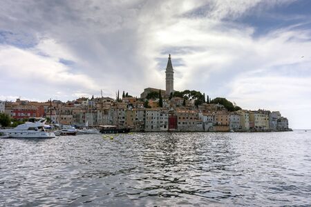 City panorama of the romantic port city of Rovinj on the Adriatic Sea