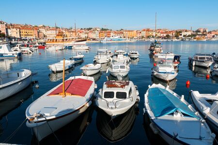 Beautiful medieval town of Rovinj, colorful with houses and harbor,boats in Croatia,Europe