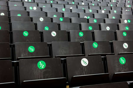 Empty chairs in a theatre due to lockdown social distancing covid 19 coronavirus in the netherlands