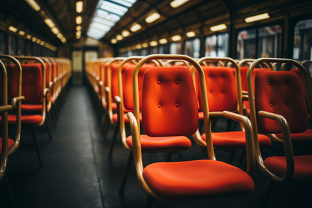 This image captures empty rows of chairs in a modern space filled with dramatic lighting, creating an inviting atmosphere, perfect for events and gatherings.