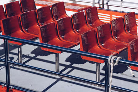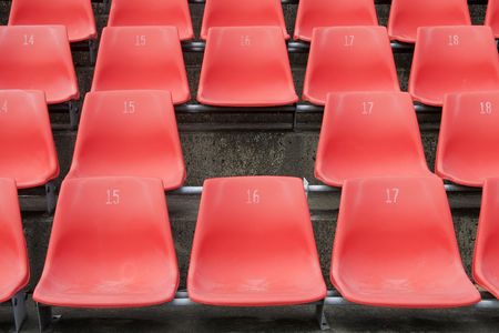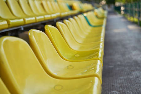Rows of plastic chairs await passionate fans at the sport stadium, anticipating the thrill of competition. Invest in the excitement of live sports.