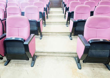 Empty university lecture hall chairs closeup no students present, empty university classroom, auditorium Lockdown, covid 19 quarantine, closed educational facilities, class dissmissed abstract concept