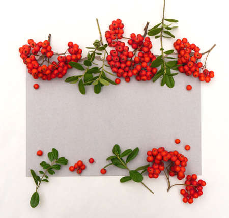 Rowan branch in the autumn forest. copyspace.