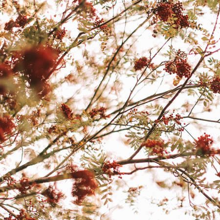 Mountain ash berries in the tree autumn background