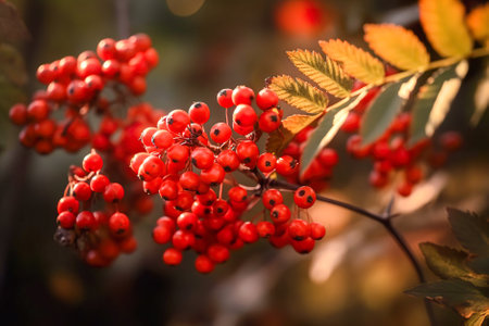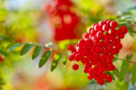 rowan branch on a sunny day. red rowan berries
