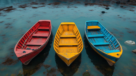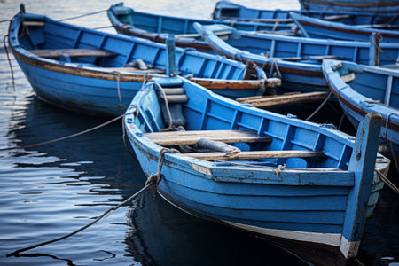 An AI generated illustration of vessels, moored side-by-side in a tranquil body of water, creating a picturesque maritime scene