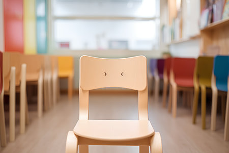 A row of colorful plastic chairs in a bright classroom setting, showcasing vibrant hues that enhance learning environments and promote creativity.