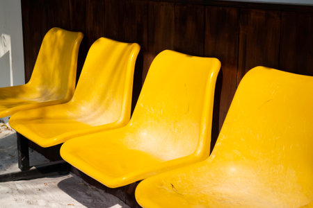 Yellow plastic seats on the road, stock photo