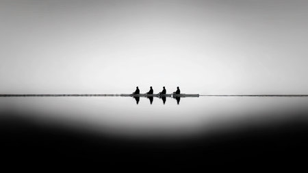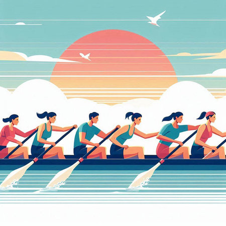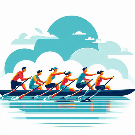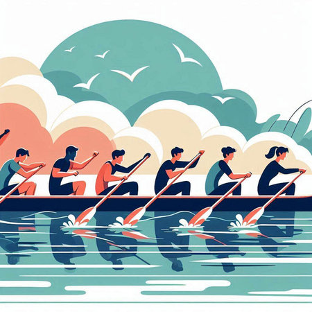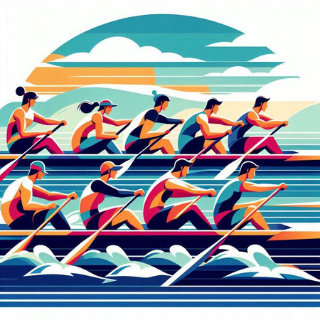 A team of rowers moving in unison the power and grace of their movements captured in detail created with Generative AI