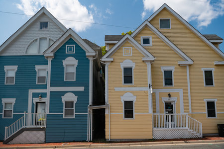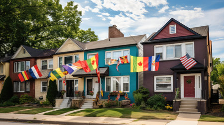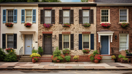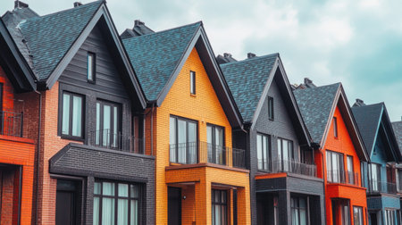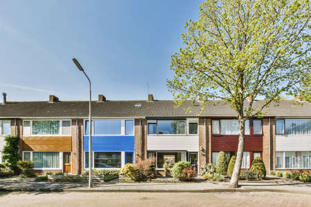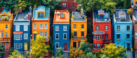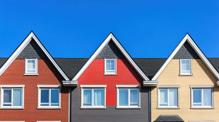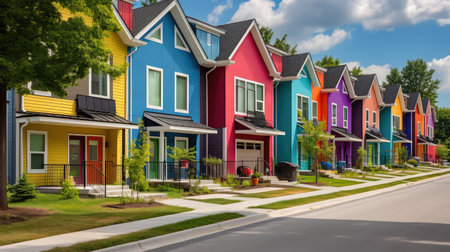 Charming Row of Colorful Houses with Unique Hues and Cozy Features for Ideal Dwelling Homes