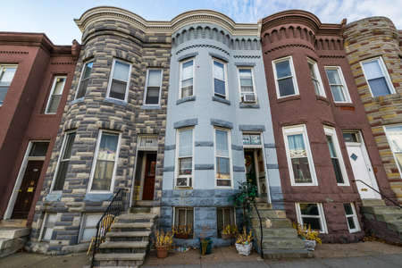 Row houses on Maryland Avenue, in Charles Village, Baltimore, Maryland