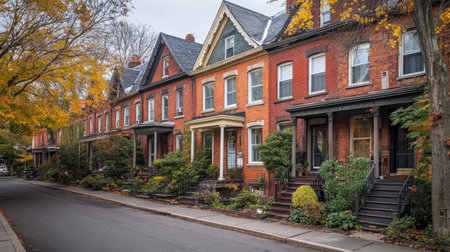 Autumn Row of Victorian Era Brick Houses