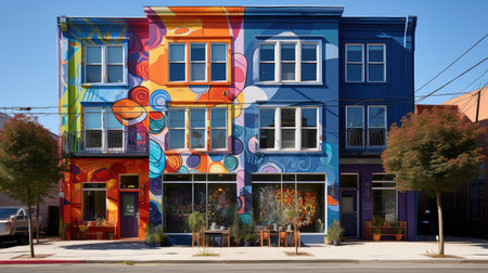 Colorful stucco traditional private townhouses. Residential architecture exterior.ai generative
