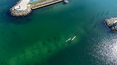 Kayaks in the water, just outside Aarhus marina and sailsport area