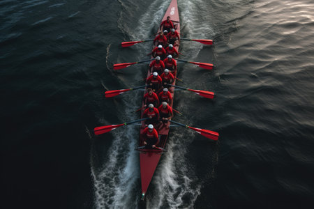 A team of rowers moving in unison the power and grace of their movements captured in detail created with Generative AI