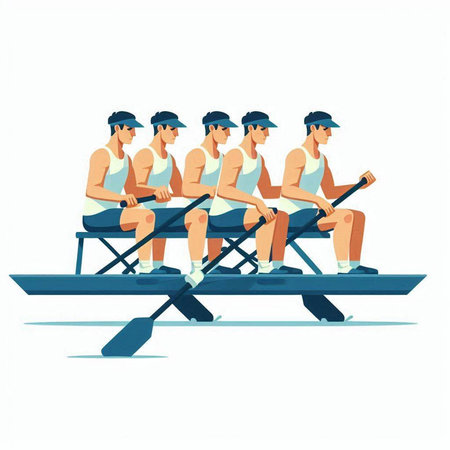 Group of rowing team in a rowboat, vector illustration.