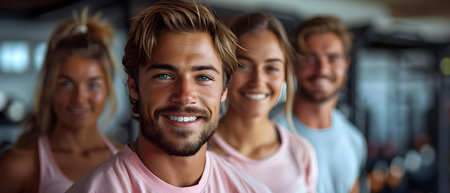 Group of young people smiling and looking happy in casual sports clothes and exercise clothes In the group photo in Gym.