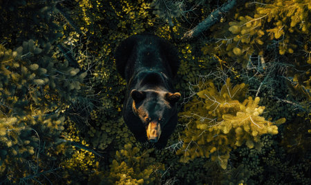 a bear gracefully swims in the shadow of trees, creating a captivating narrative-driven visual story. this national geographic photo, captured in 8k resolution, showcases an ambitious and zen-inspired scene. the dark gray and brown tones, along with the misty atmosphere, add depth and intrigue to this stunning wildlife image. ai generated