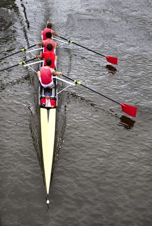 Rowing: a coxed four (4+) from above,