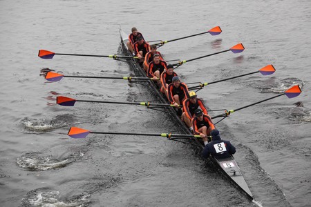 BOSTON - OCTOBER 24: Hobart College men's Crew competes in the Head of the Charles Regatta on October 24, 2010 in Boston, Massachusetts.
