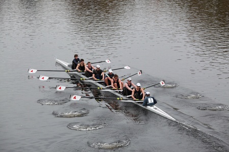 BOSTON - OCTOBER 24: Eton College Men 18 and Under men's Crew competes in the Head of the Charles Regatta on October 24, 2010 in Boston, Massachusetts.