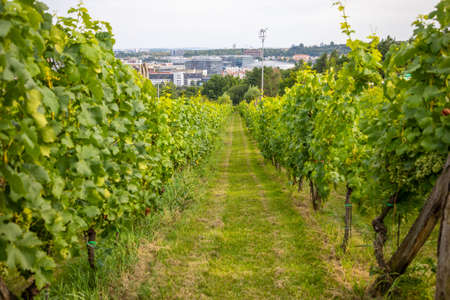 Wine Vineyards. Young wine bushes of grape plantation in Prague city, Czech republic