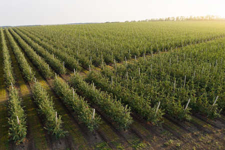 Aerial view of the summer apple orchard