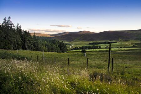 Scenic view of the countryside near Perth in Scotland in summer.