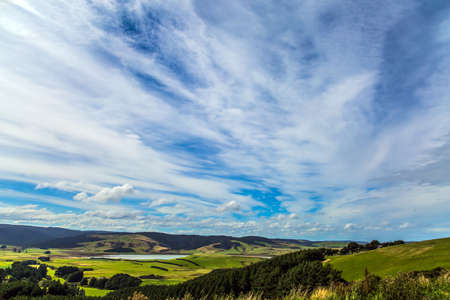 Caitlins Scenic Road. Incredible sky and clouds of summer sunset. South Island. The southernmost point of New Zealand. The concept of active, environmental and photo tourism