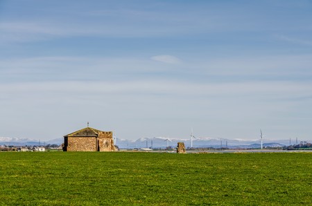 St Anthony Tower Milnthopre with open fields and blue sky