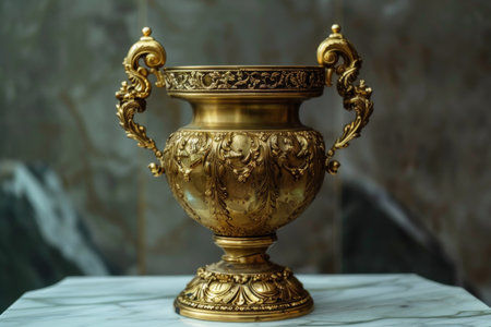 The craftsmanship of a golden trophy in close-up detail. --ar 3:2 Job ID: 70467849-f65c-4f98-b16c-cac0aeb6e87e