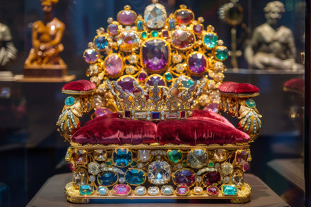A fascinating depiction of the crown in the museum, reflecting the luxury and grandeur of the royal jewels.