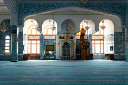 August 11, 2022 Beldibi, Kemer district, Antalya Province, Turkey. Mosque interior. Background with copy space for text