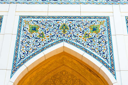 St. Petersburg Russia 03.29.2021: Arch over the entrance to the Cathedral Mosque of St. Petersburg, a cult building in St. Petersburg, an architectural monument.