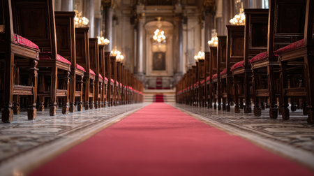 Stunning interior of an ancient cathedral with magnificent architectural details and soft lighting during a quiet moment