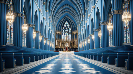 Gothic architecture illuminates spirituality inside famous basilica generated by artificial intelligence