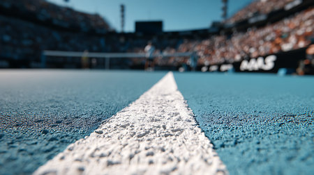 Empty tennis court with white lines. Blurred background. 3d rendering