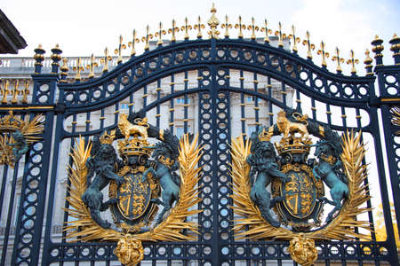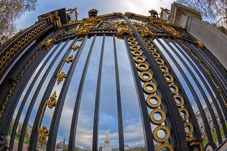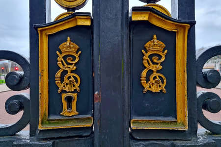 LONDON, ENGLAND - NOVEMBER 29, 2017: Gates with golden details surrounding the entrance of Green Park next to Buckingham Palace.